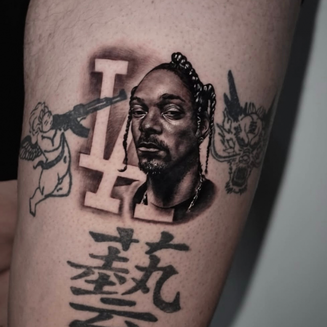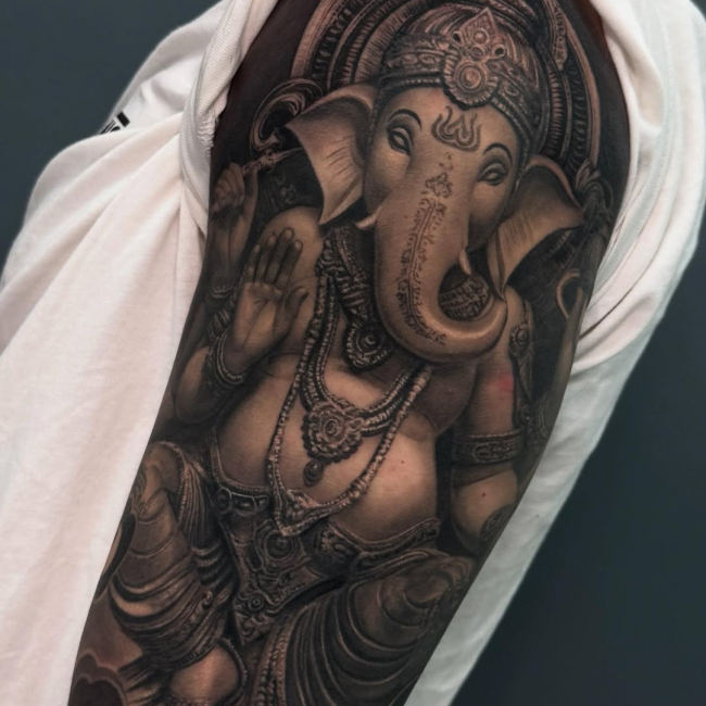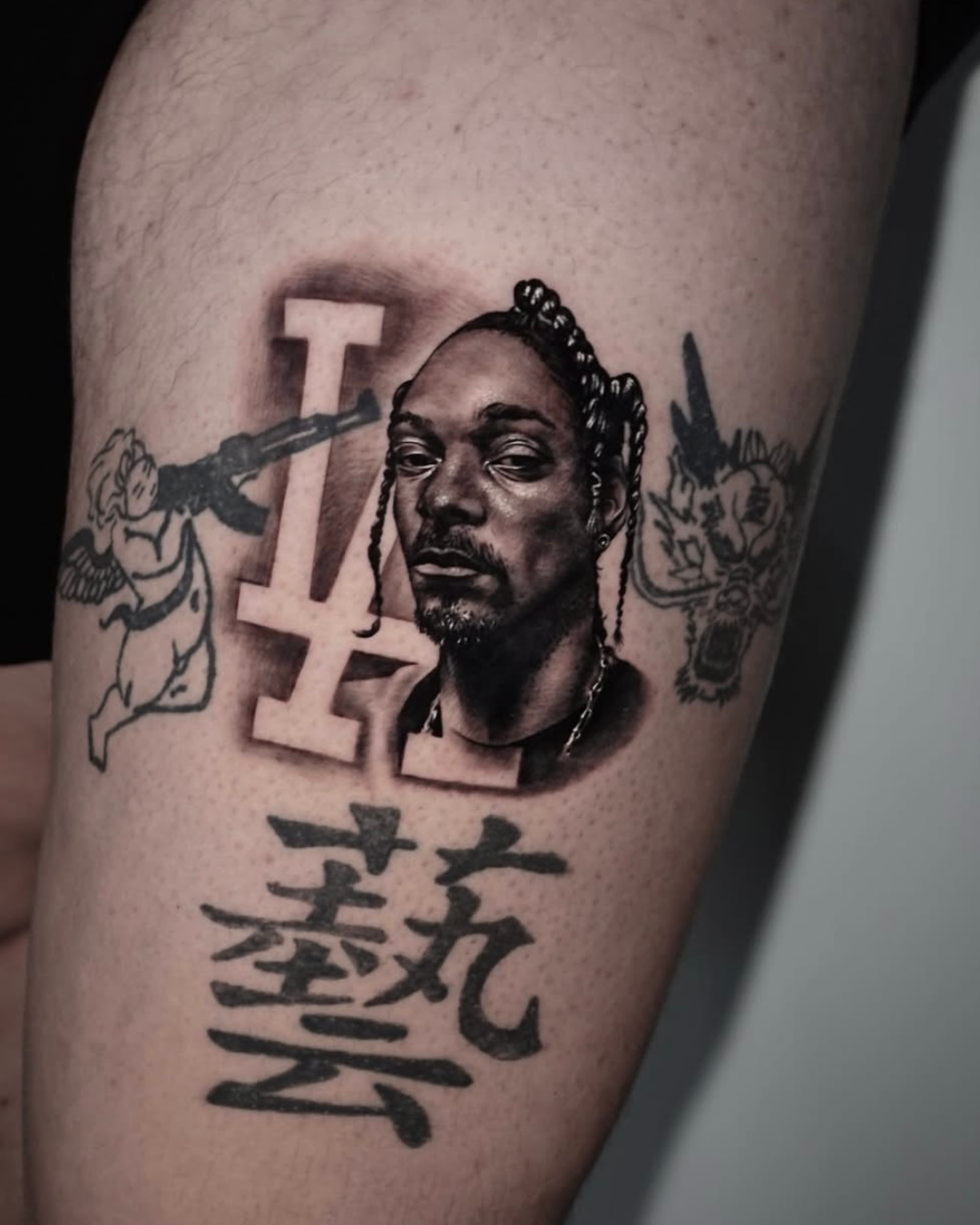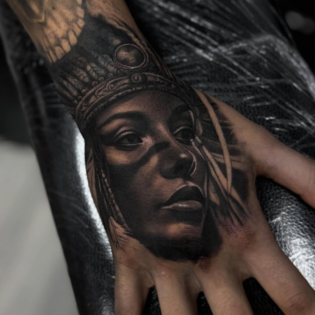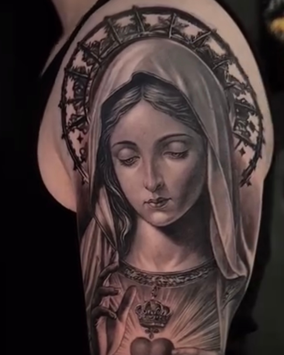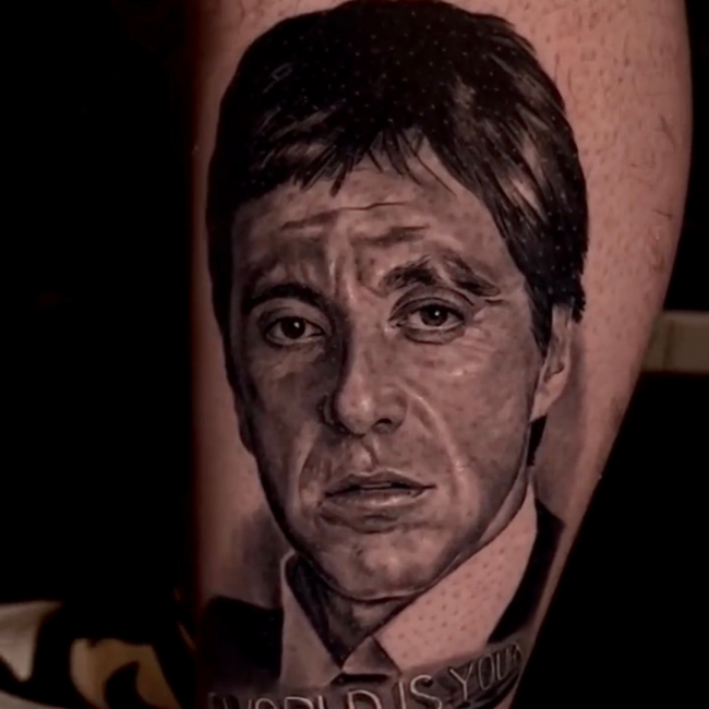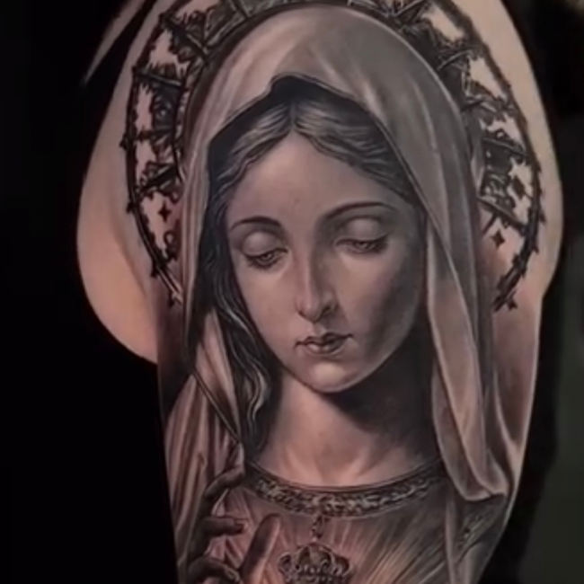 Daniel ist spezialisiert auf Realistic Tattoos im Black and Grey Stil und überzeugt mit unglaublicher Detailtiefe. Seine Arbeiten reichen von präzisen Porträts über ikonische Popkultur-Motive bis hin zu religiösen Darstellungen und Tierporträts. Jedes Tattoo zeigt seine technische Kontrolle und seine Fähigkeit, Stimmungen authentisch einzufangen.