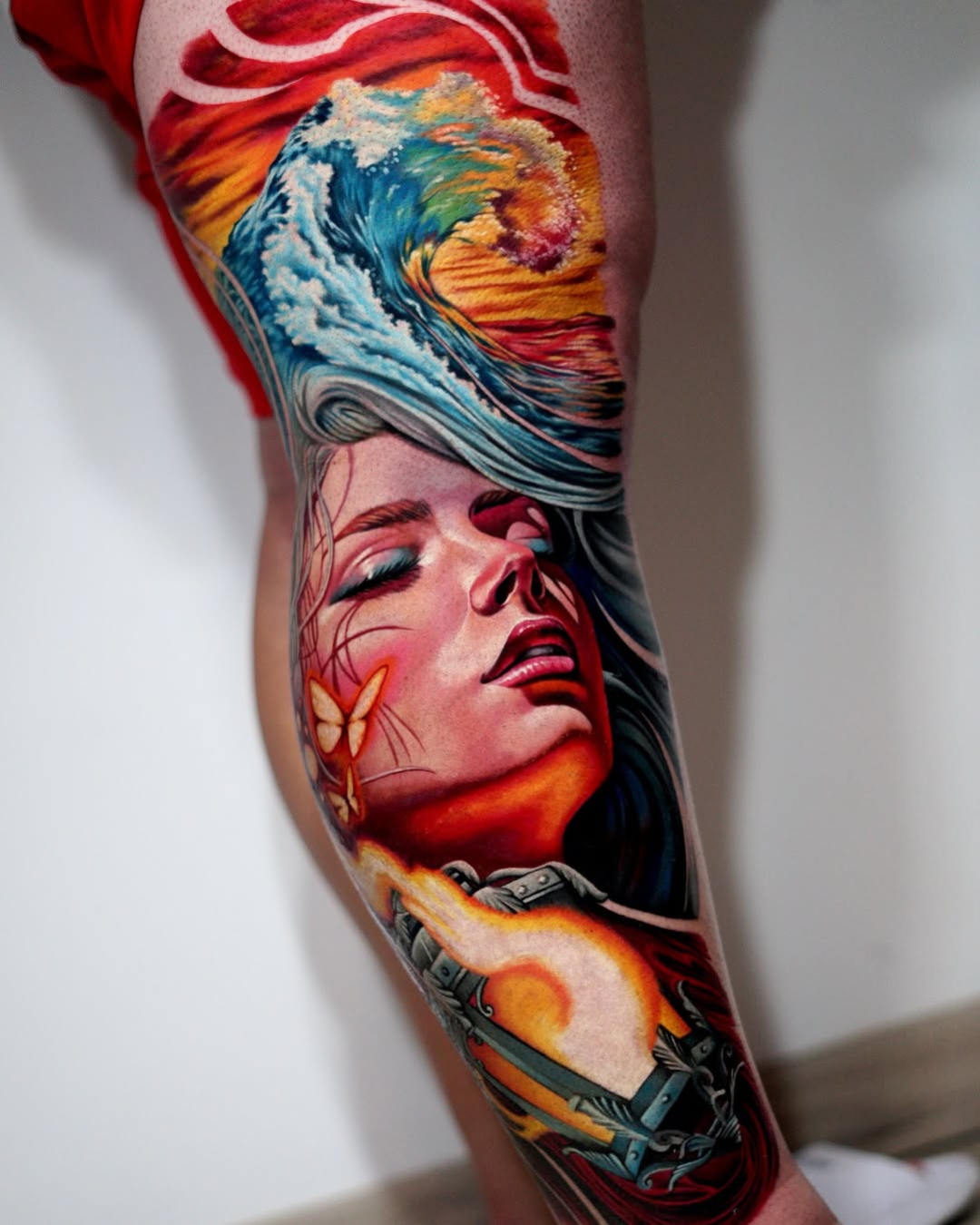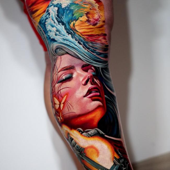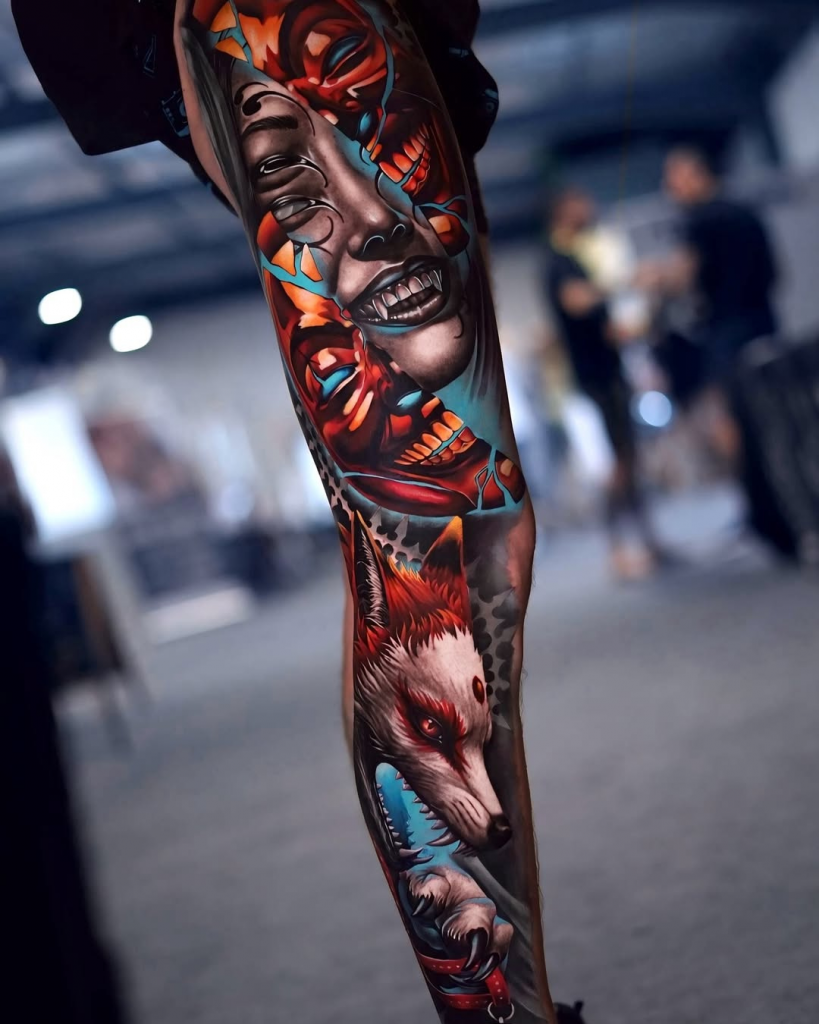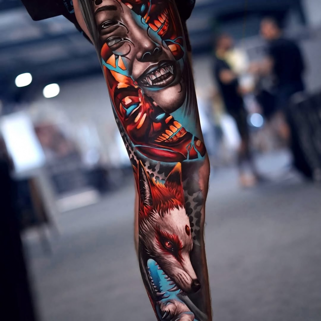 David gehört zu den Artists, die Color Tattoos mit außergewöhnlicher Präzision und stilistischer Tiefe verbinden. Sein Fokus liegt klar auf bunte Tattoo Arbeiten, die durch starke Kontraste, weiche Übergänge und perfekt ausgearbeitete Details überzeugen. Ob ikonische Porträts, Anime Tattoos, kulturell geprägte Motive oder dynamische Warrior-Designs – David schafft es, jede Stimmung authentisch und lebendig wirken zu lassen.