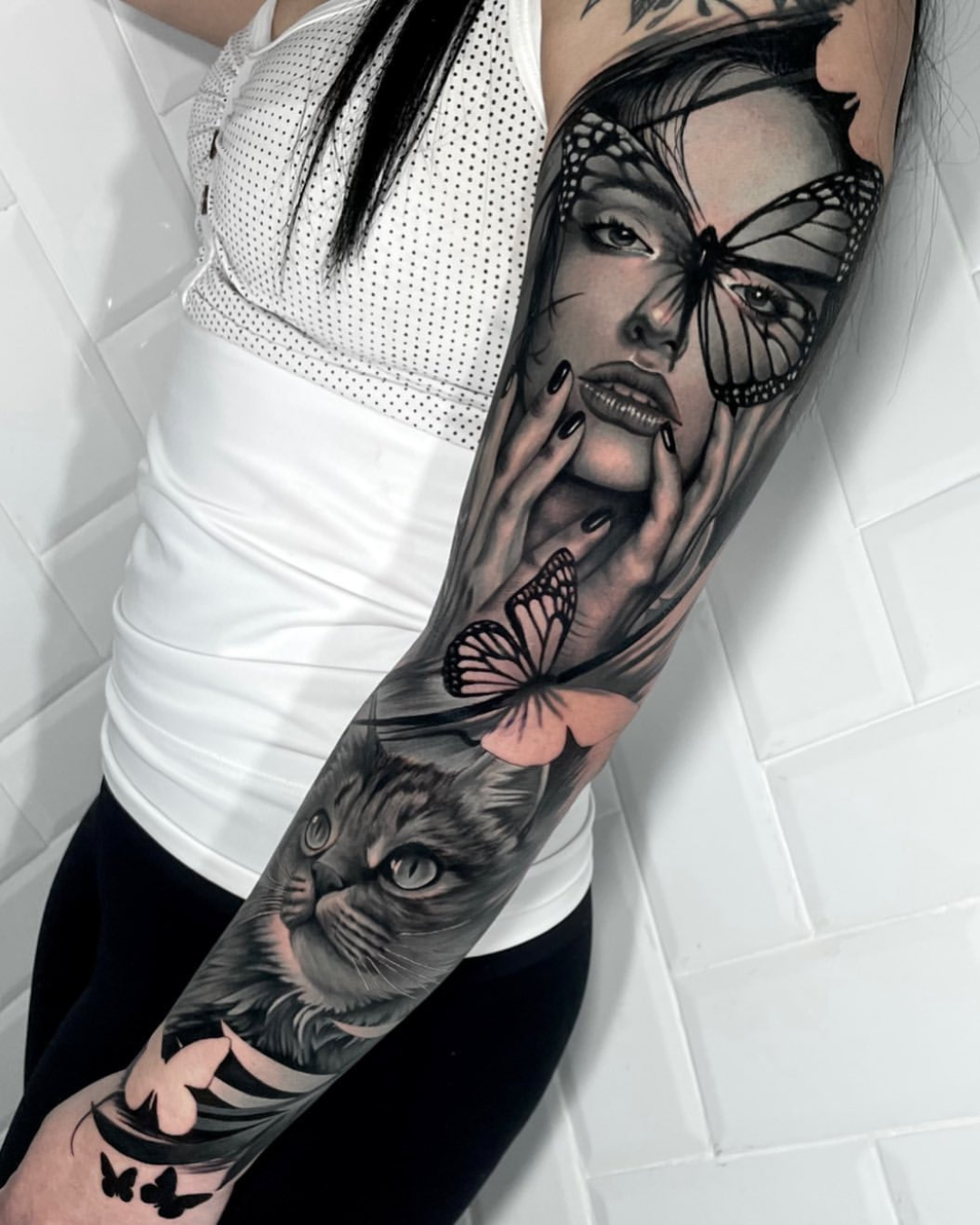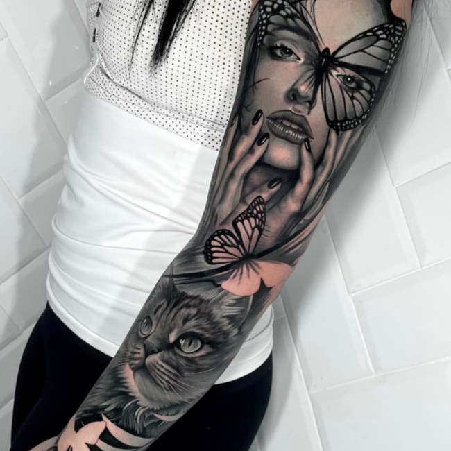 Sein Stil zeichnet sich durch klare Kontraste, harmonische Tiefen und eine beeindruckende Liebe zum Detail aus. Egal ob ein fein herausgearbeitetes Tierporträt, ein charakterstarkes Gesicht oder ein komplexes Thema – David schafft Tattoos, die sich durch Atmosphäre, Emotion und technische Perfektion auszeichnen.