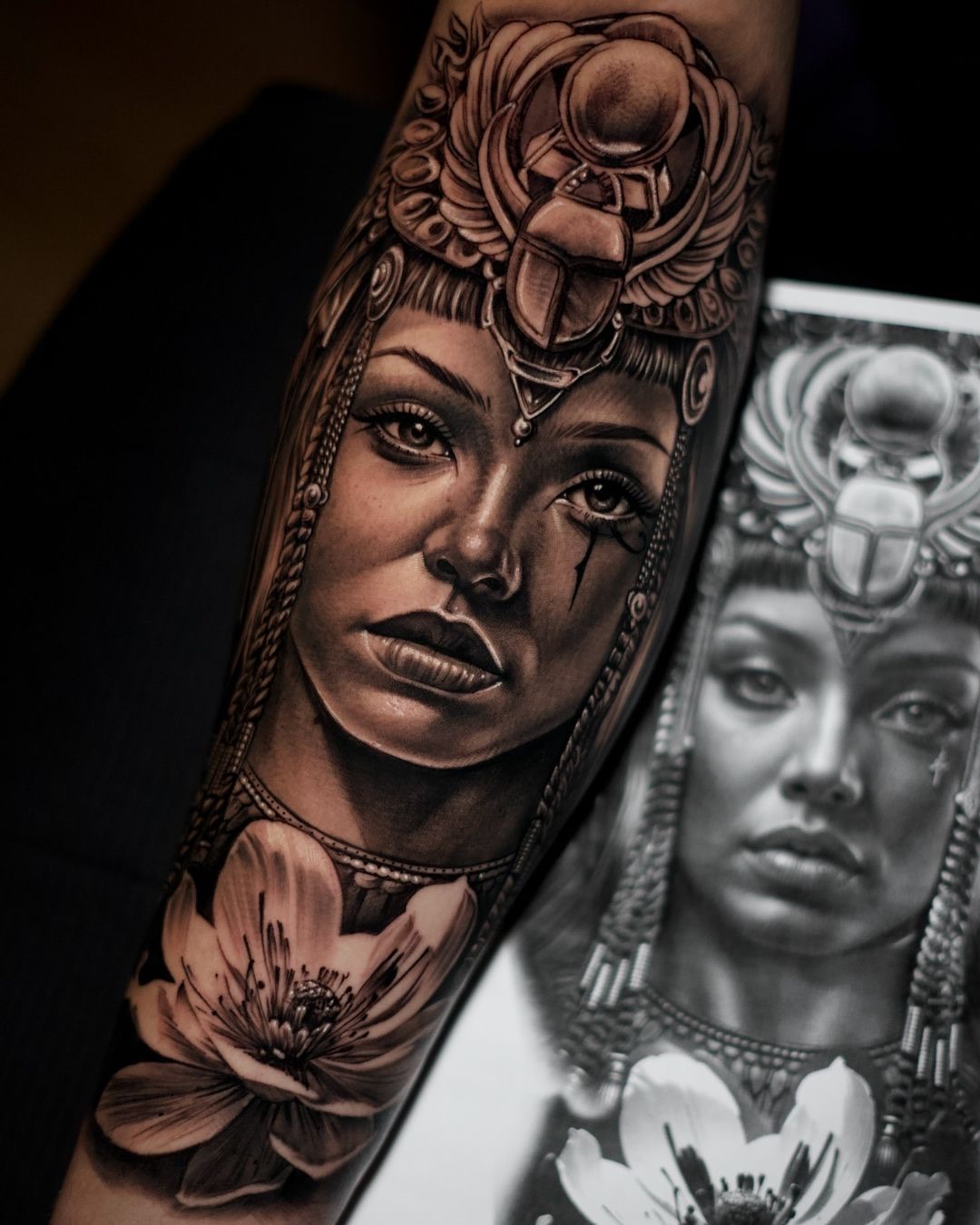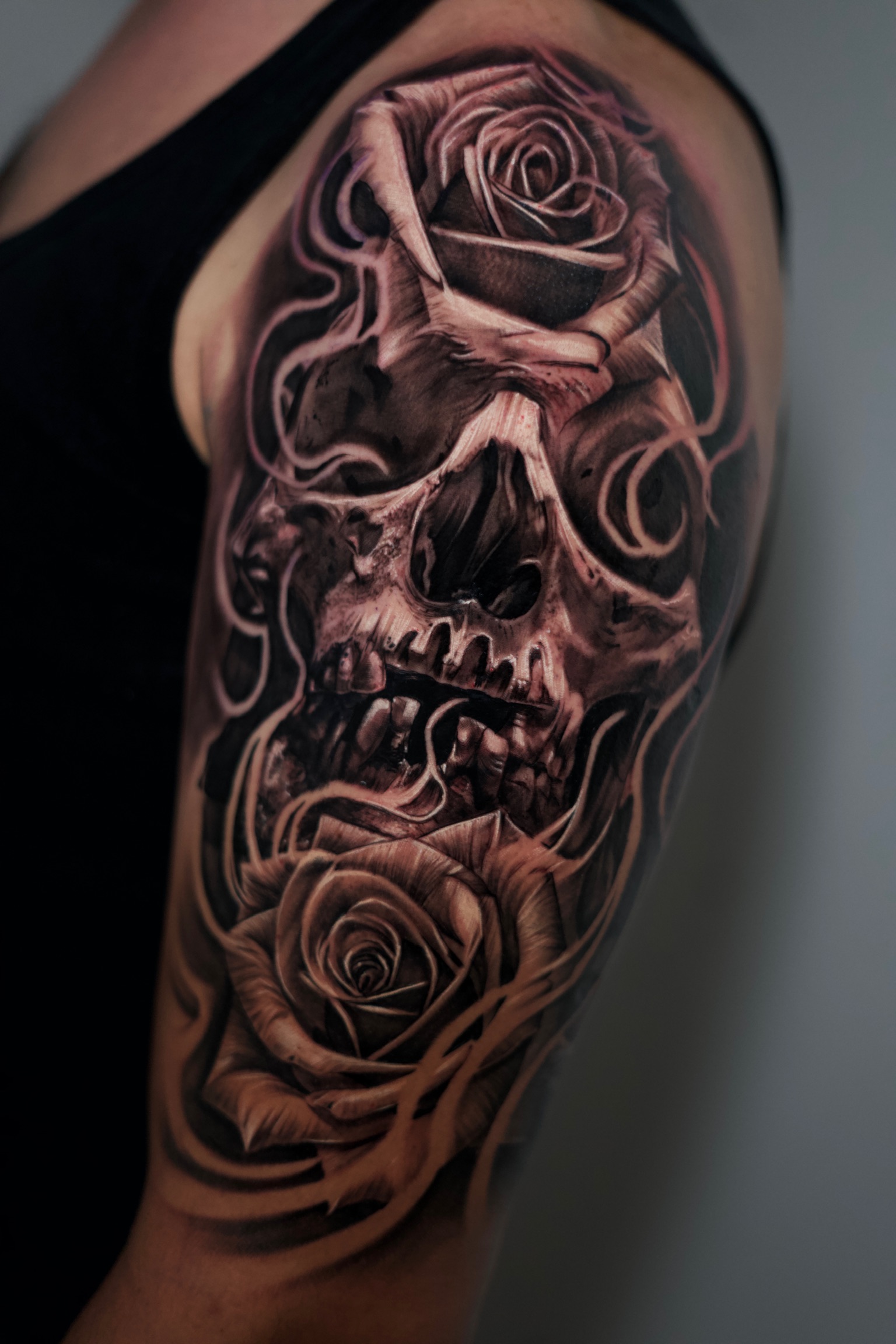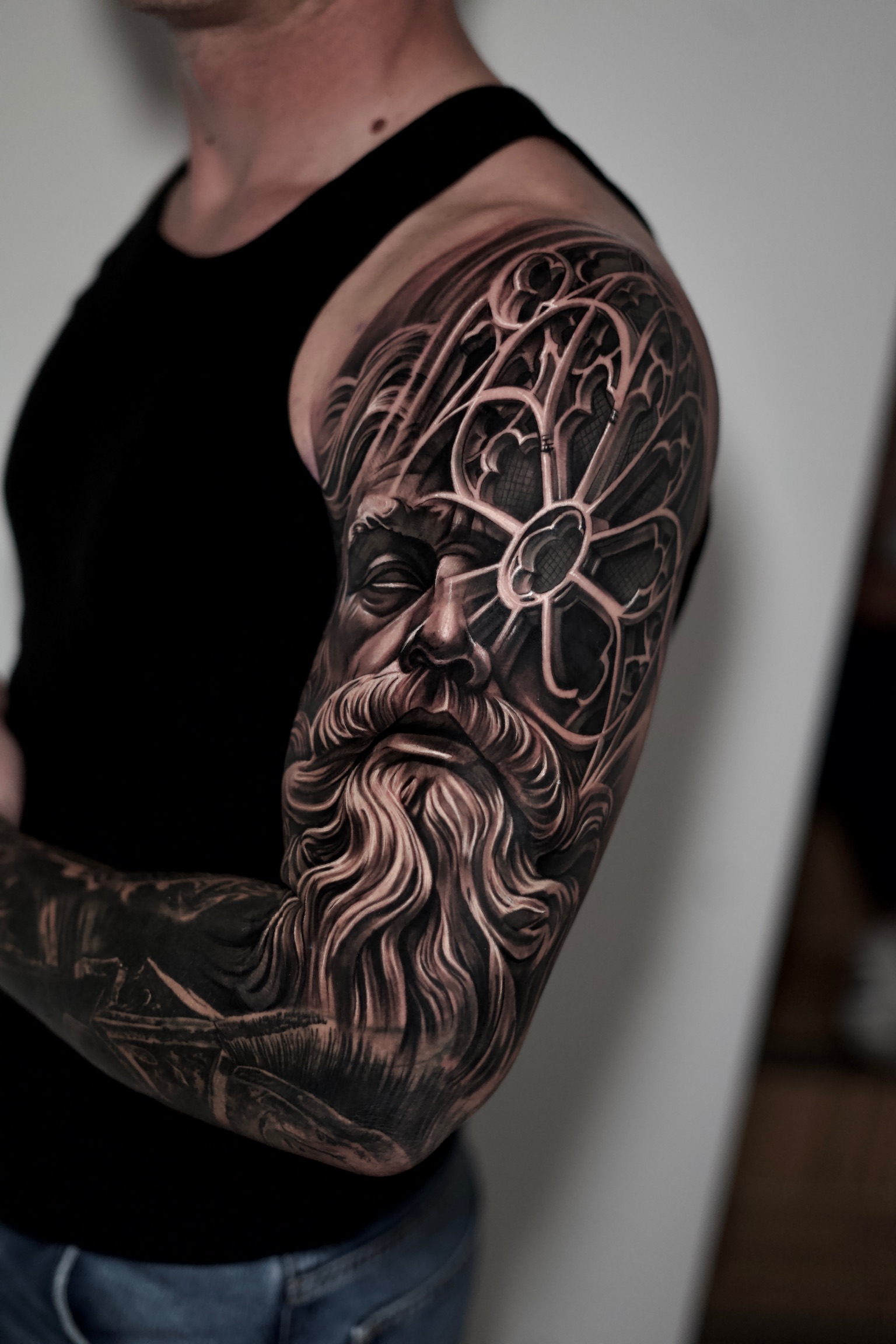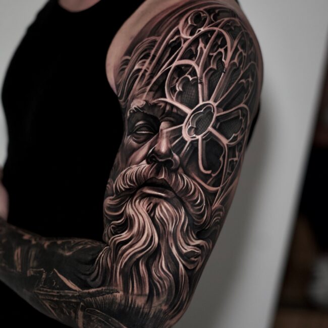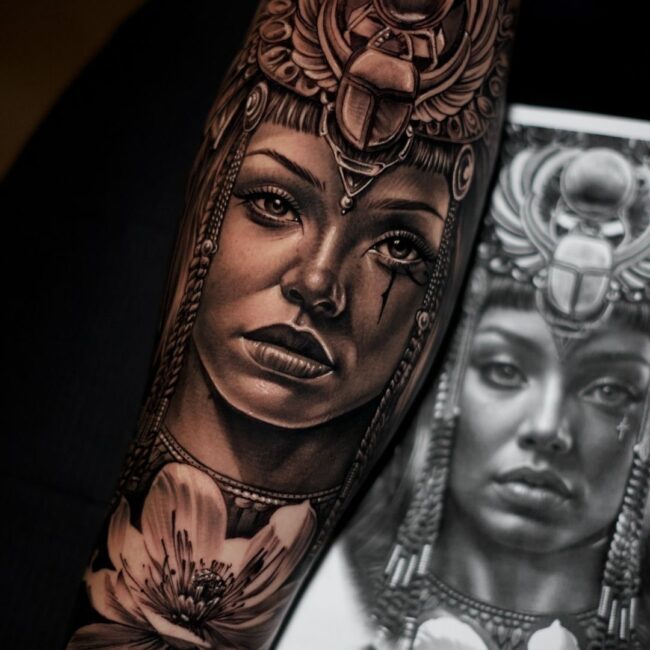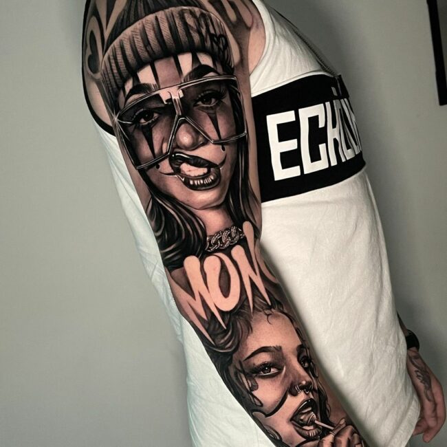Fon ist ein talentierter Tattoo-Künstler in Wiesbaden, der sich auf Realistic Tattoos und Portrait Tattoos spezialisiert hat. Mit seiner außergewöhnlichen Fähigkeit, selbst die kleinsten Details lebensecht darzustellen, verwandelt er deine Haut in ein echtes Kunstwerk. Fons präzise Fineline-Technik sorgt dafür, dass jedes Tattoo filigran und detailliert umgesetzt wird, was besonders in seinen Realistic Portrait Tattoos zur Geltung kommt.